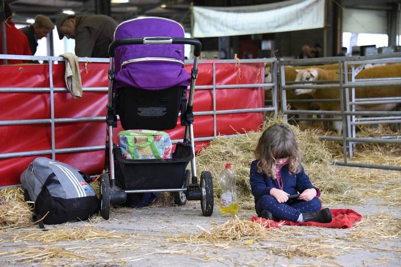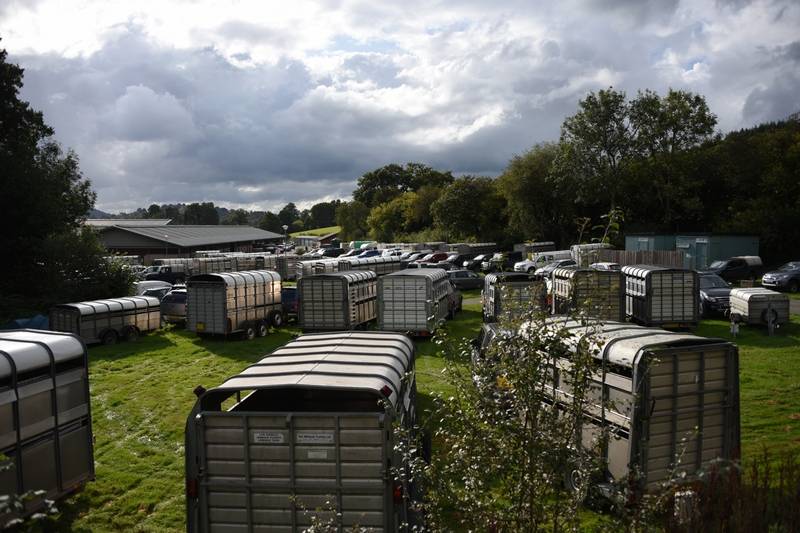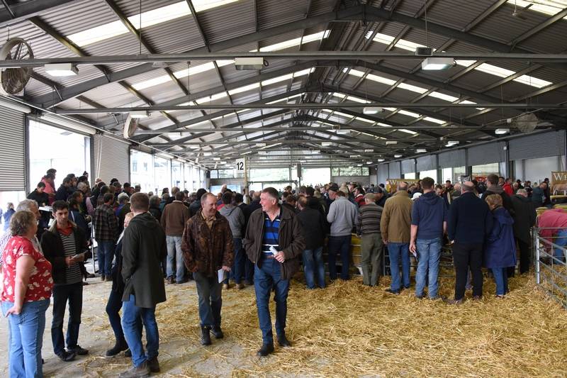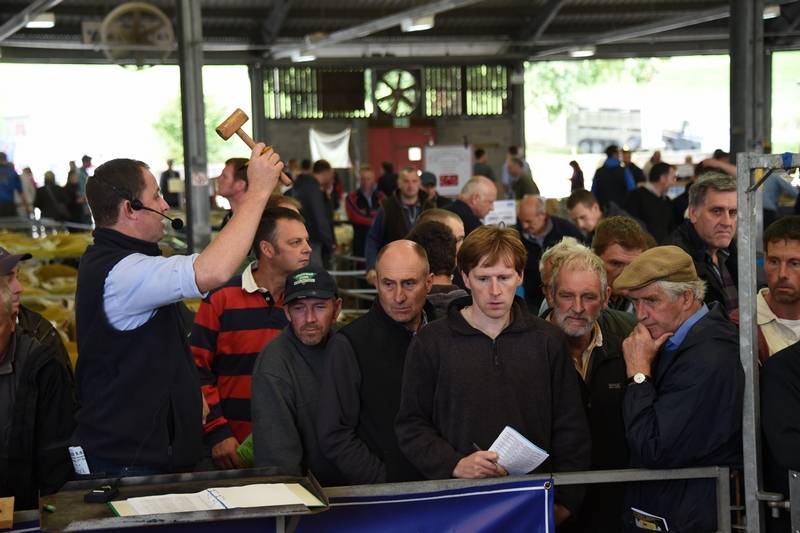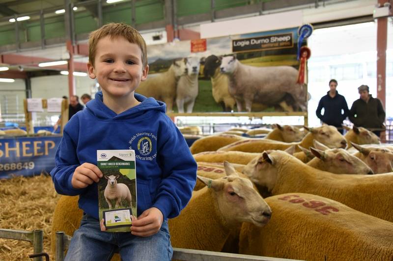 David Jones Ddol Farm, Llanbadarn Fynydd with his grandson - Noah attending his first tup sale
